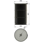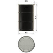 This high-quality steel drum has a capacity of 120l and is specially designed to be used as a container for cyclonic filters, such as the DUST COMMANDER CLC, DLX, HD, HD-SST, XL and XL+. With a wall thickness of 1.0 mm (sides) and 0.7mm (bottom and lid), it guarantees optimum strength while remaining light and easy to handle. The galvanised steel lid can be laser-cut for perfect compatibility with the filtration systems mentioned (please select the desired cut from the drop-down menu above).